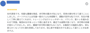 【口コミ】何度も腰痛を発症、歩行時の躓きが気になり、将来の事を考えて通うことにしました。